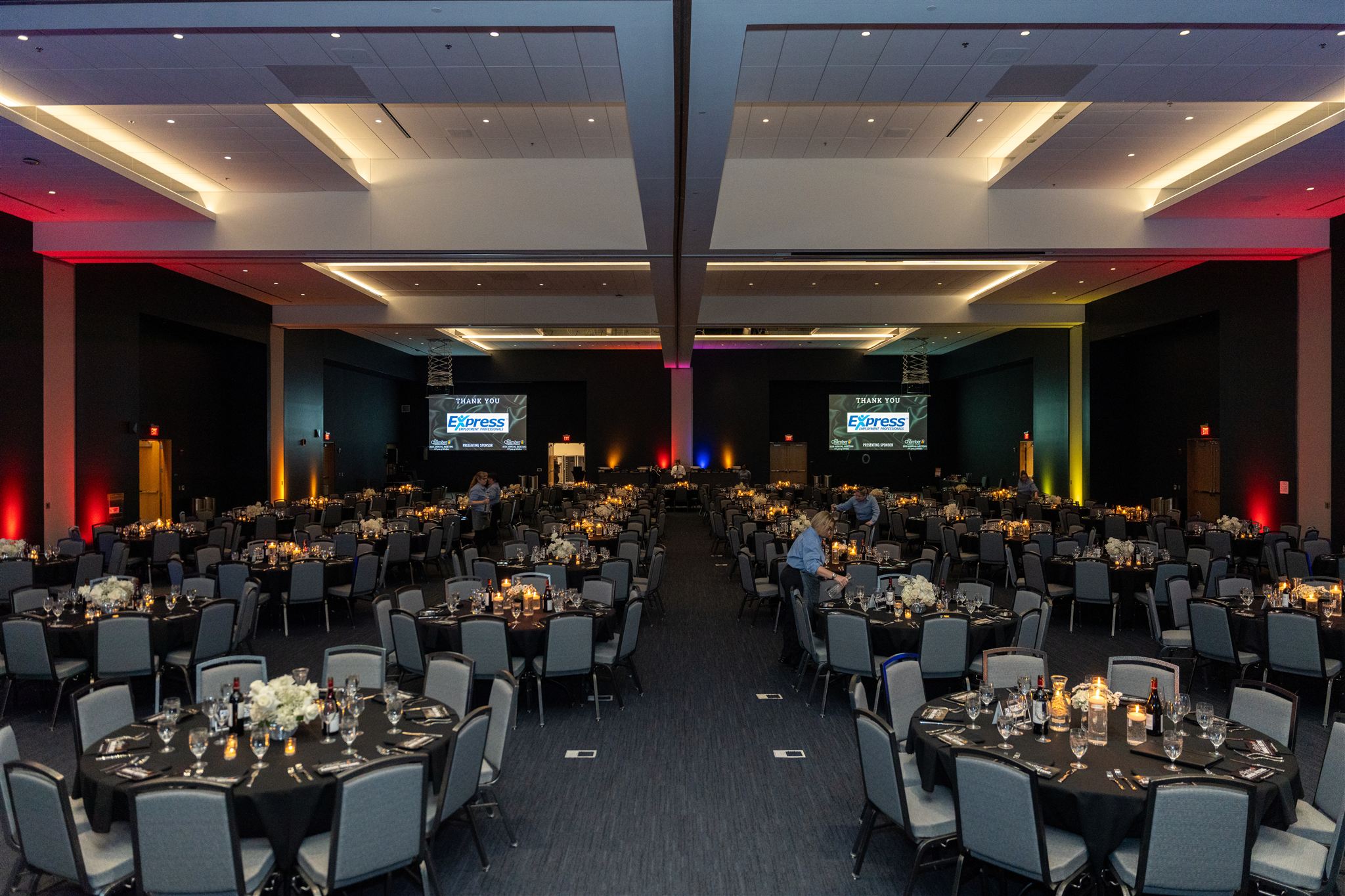The celebration took place at the new University of Kansas Conference Center, adjacent to the David Booth Kansas Memorial Stadium, a location that made the evening especially meaningful for our team. As designers of the conference center and proud Chamber members for 50 years, it was an honor to see the space come alive.