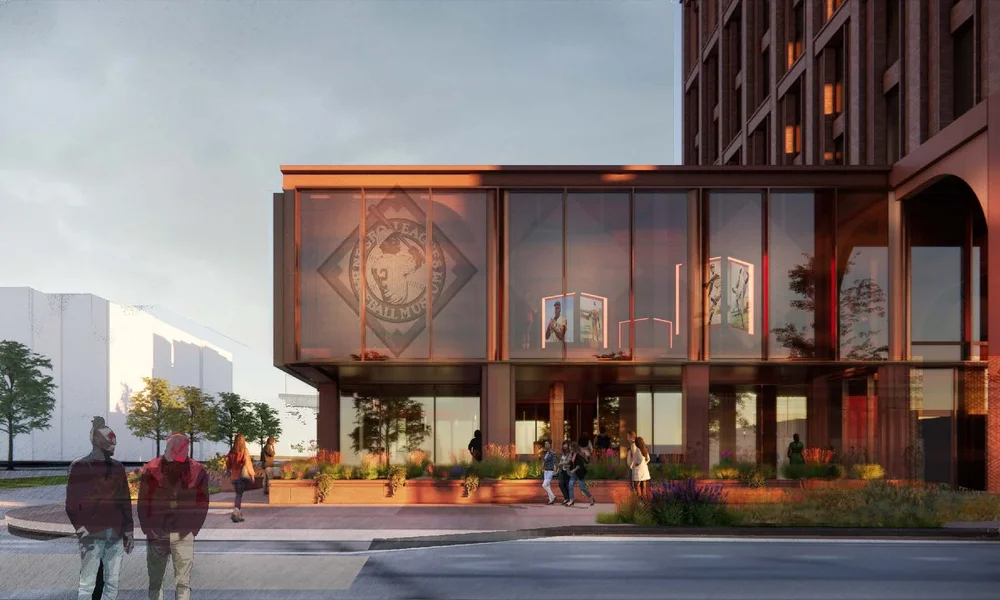 We’re intentionally sprinkling little things like that throughout the project to tell a baseball story. In the sidewalk, every 90 feet, the length of a base path, you’ll discover unexpected details to create immersion, while the physical characteristics of the building echo aspects of baseball. There’s a spot in the museum with chicken wire, dividing the spectator from the player. We also have glass that evokes this separation and a custom metal panel filleted like the shape of baseball bats. We also thought about the image of bats lined up in dugouts. We’re subtly replicating that in the architecture, with bats marching down the building. I mentioned arches and colonnades for arrival. We’ve talked about arrival a lot. You have the museum visitor, private events, people working in the YMCA, hotel guests, someone grabbing a drink at the hotel, and ensuring that each experience is thought of, memorable and a key part of the discussion.