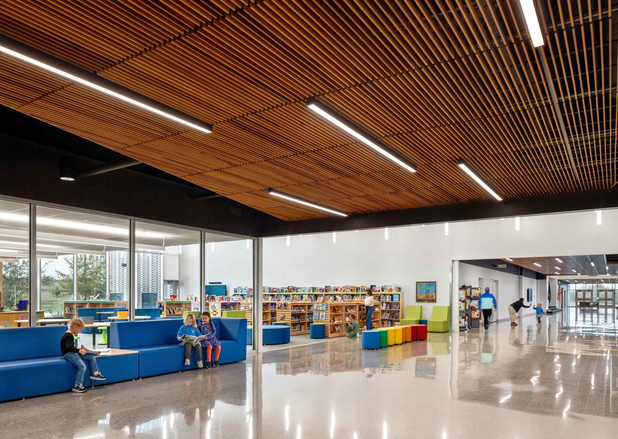 A diverse mix of spaces supports a wide range of activities—from maker-based exploration and team projects to quiet reading and small group instruction. Learning studios are equipped with adaptable furniture and integrated technology, ensuring they can be easily adjusted to meet changing needs throughout the day.