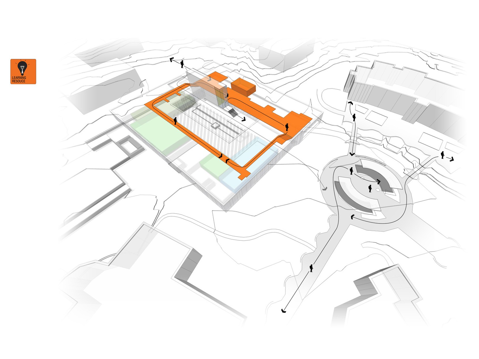 During programming, Multistudio collaborated with a group of younger CNM faculty to imagine alternative ways to integrate academic services and faculty interaction into students' busy daily routines. The two programmatic strategies that emerged out of this collaboration—the Learning Commons Loop and the Faculty Office Pod—put the student educational experience front and center.