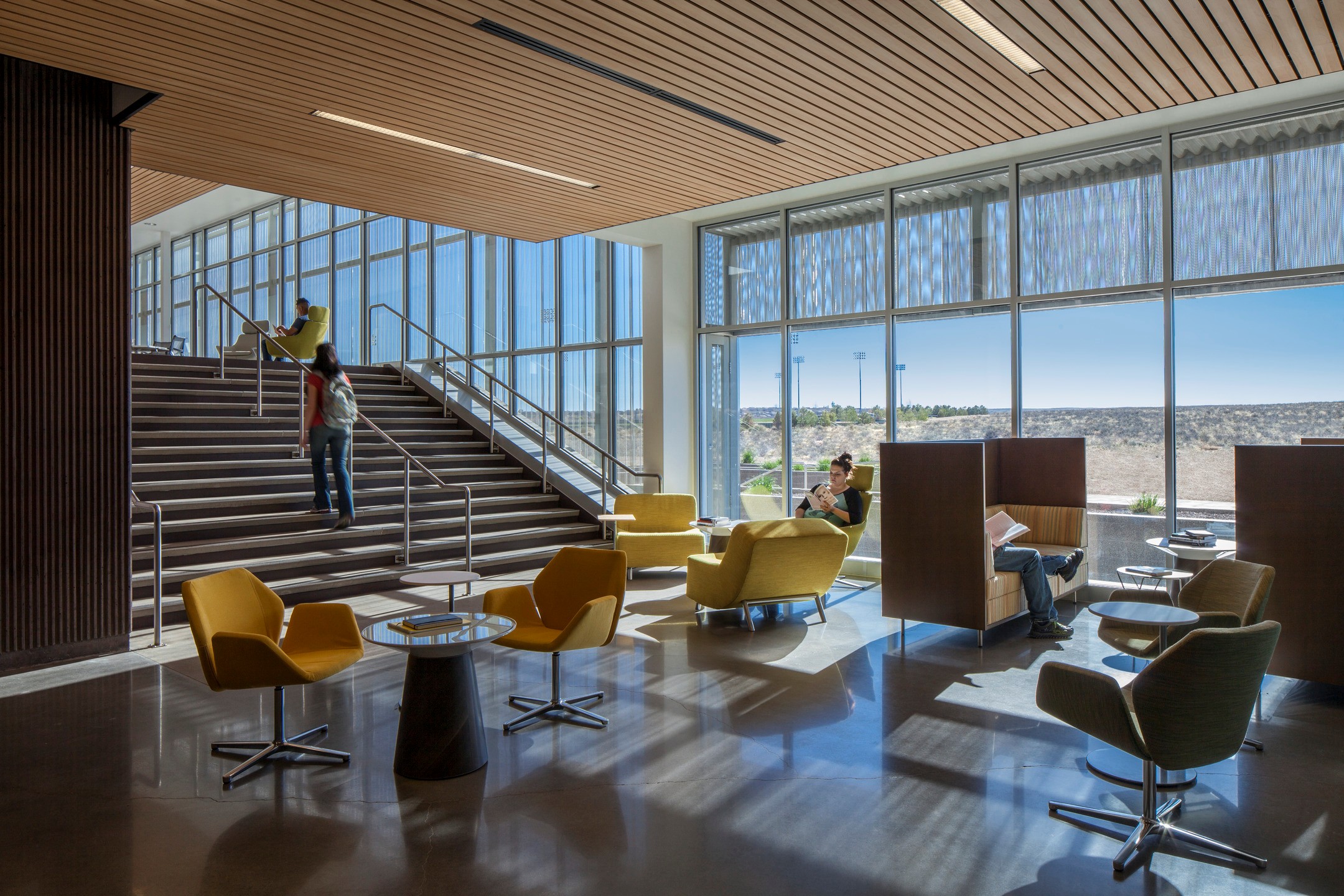 As visitors progress around the Loop, they are engaged by an ever-changing combination of learning spaces, enticing study lounges, and expansive views to the vast New Mexico landscape.