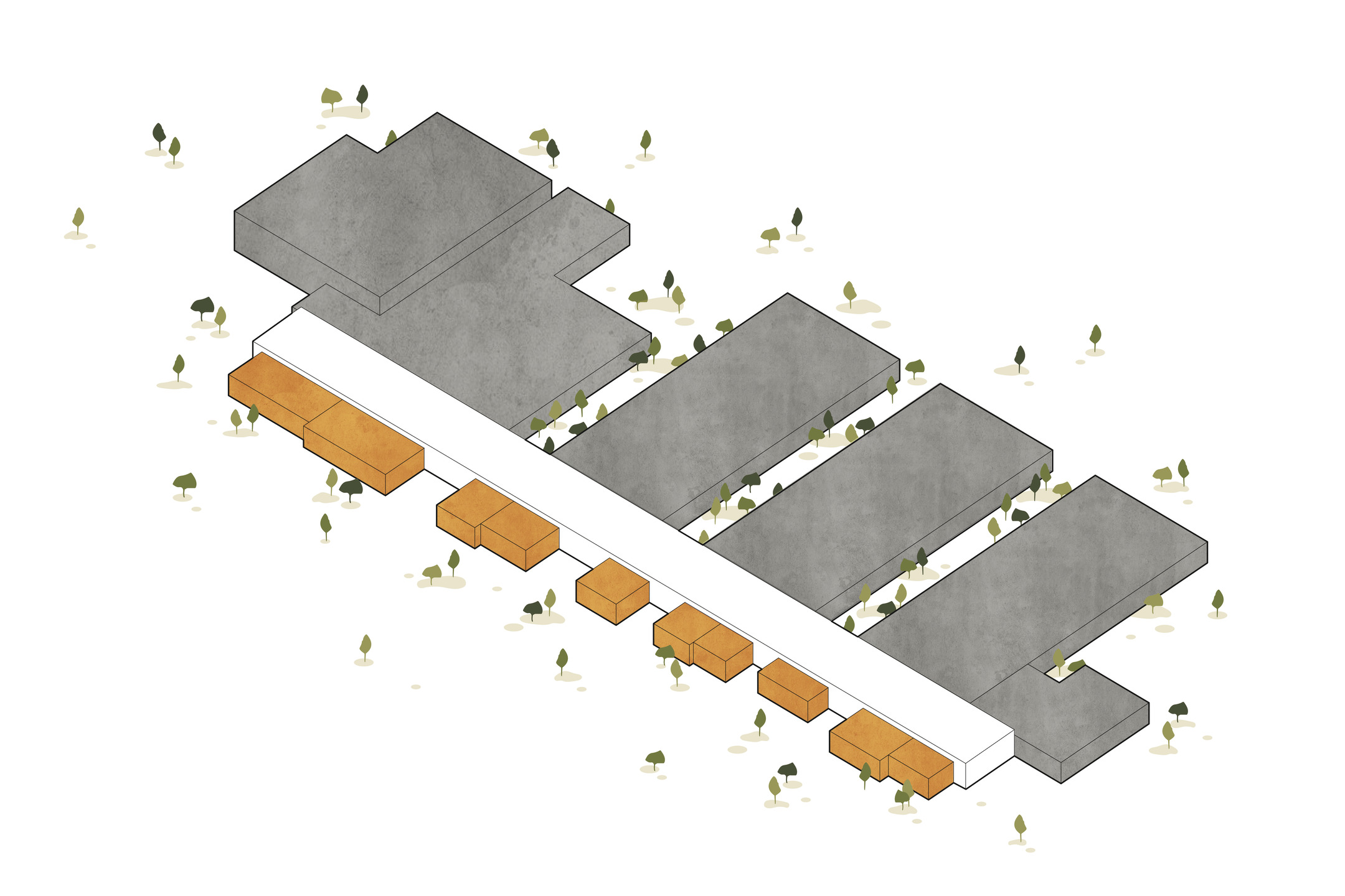Arranged like pebbles scattered along a path, students may also explore the ‘space between’—each unique in scale, privacy, and connection to the outdoors.